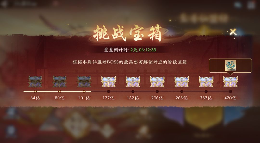 3、挑战仙盟Boss累计伤害≥5000万,奖励为:兵令*2990