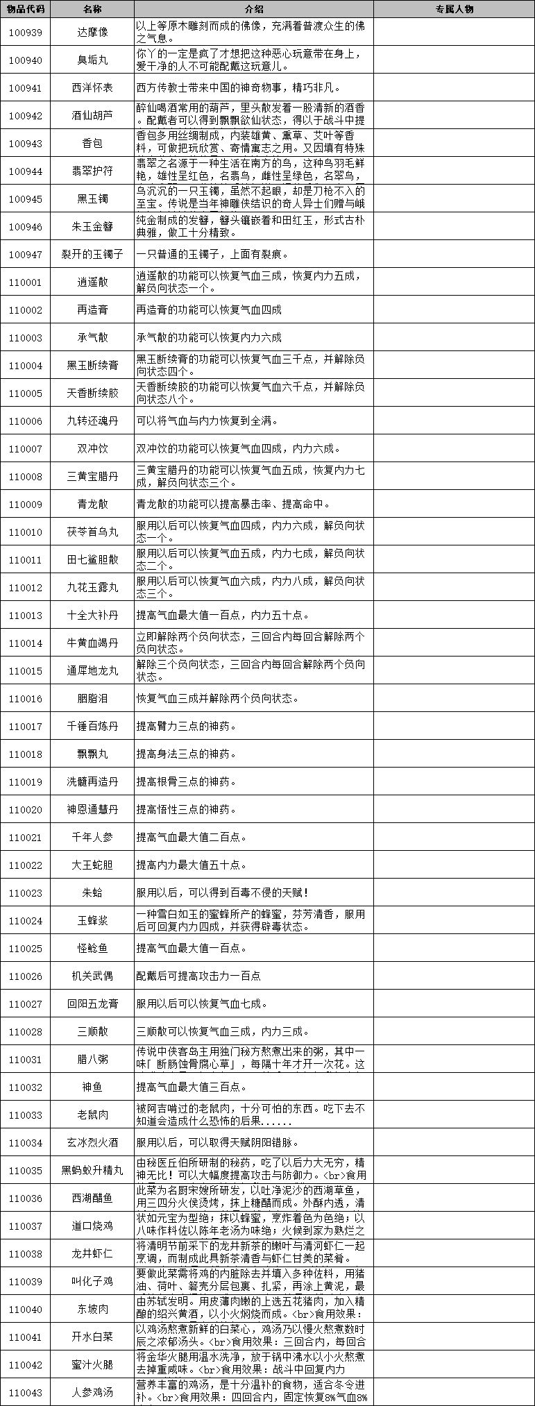 侠客风云传前传物品代码