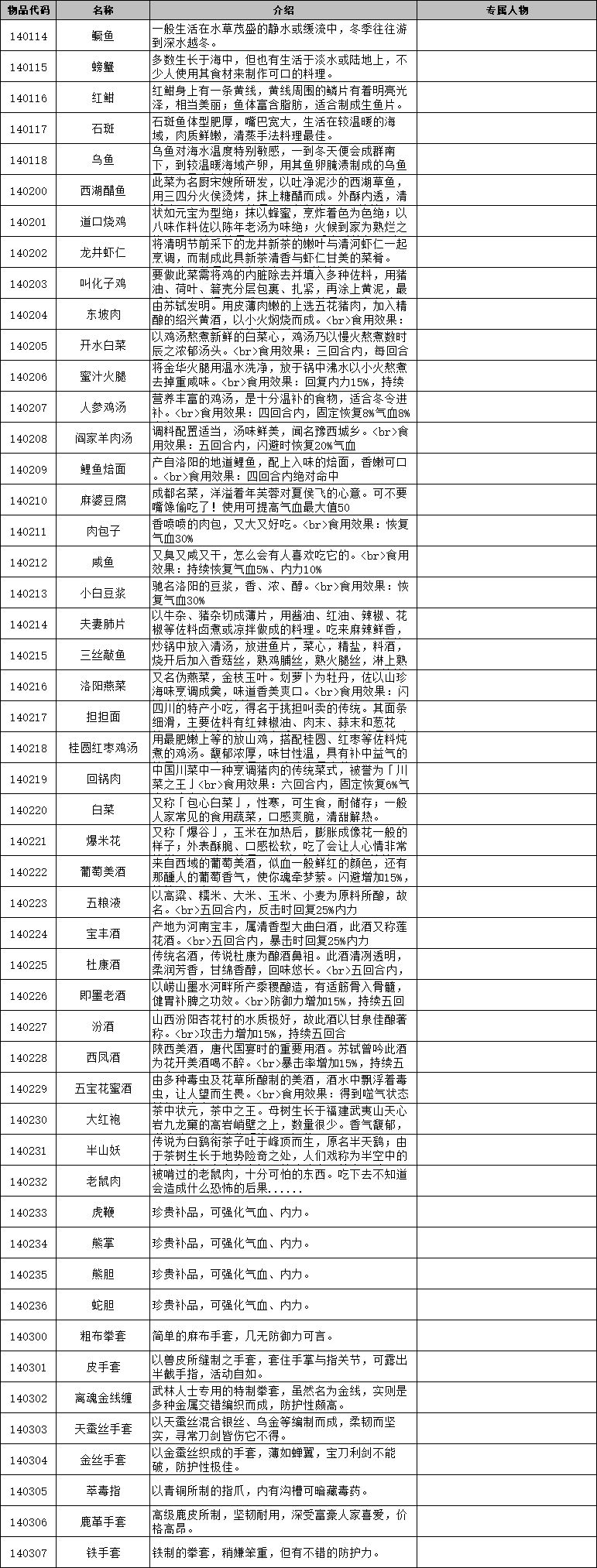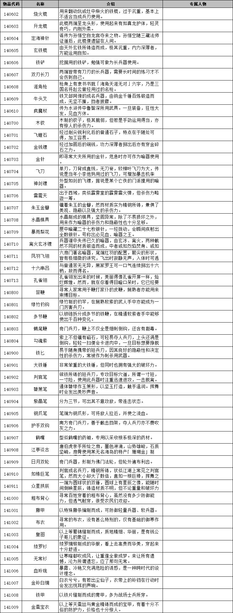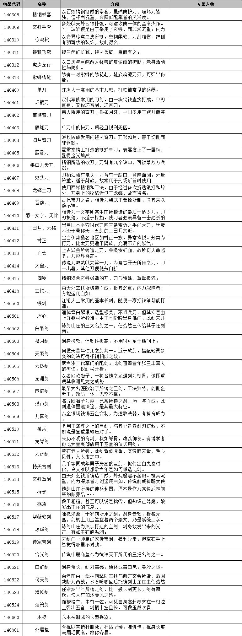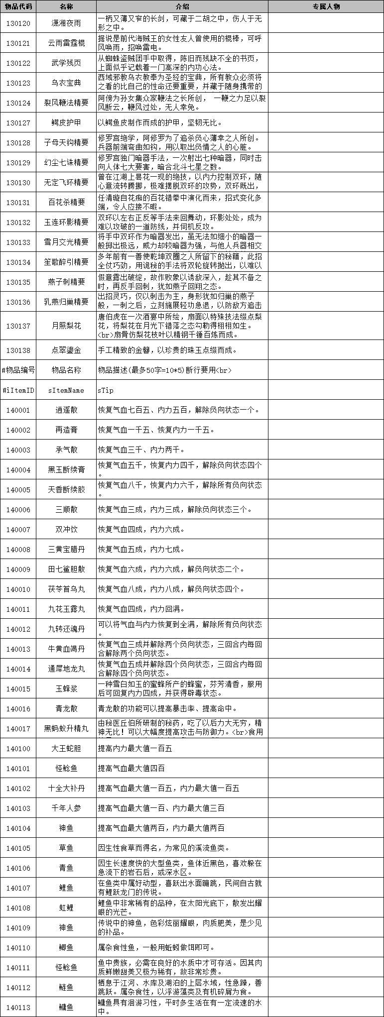 侠客风云传前传 物品代码