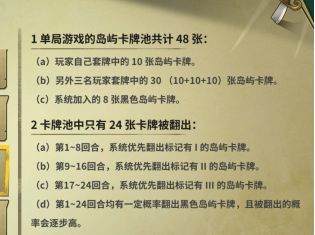罗盘一共3种颜色,红绿白,红罗盘说明接下来三个岛屿红色数量是大于绿色的,存在可能 有红红绿、红红红、红红白、红白白(这4种还有着顺序的变化就不一一列举了)。绿罗盘:绿绿绿、绿绿红、绿绿白、绿白白,白罗盘:白白白,白绿红。而如何确定岛屿的颜色,就要结合前2个罗盘一起推算,打个简答的比方:1阶段出门是红罗盘第一个岛是红 ,在没有推拉岛的情况下,到了第二个岛是绿罗盘,1234岛就有可能是红红绿绿,红绿红绿、红白白绿,等第二个岛出来就能准确推算出第三个岛的颜色。推算岛屿这个个人觉得 就是勤能生巧的事,多玩玩比直接看攻略 有效,攻略一堆字可能看的一脸懵逼。说道看罗盘就不得不提推岛和拉岛 ,拉红色提前3格,是将离你最近的红色岛提前3格,最多提前到你教下,假如这个颜色的岛本身就在你脚下,就不会再移动,所以说一般都是后置位拉岛,前置位拉岛效果也不大,还有就是拉岛对罗盘的影响,回合结束时的拉岛如果拉到接下来的3格,就会对下个罗盘产生影响,在出牌阶段时的拉岛,如果拉到脚下,而原来本身脚下不是这个颜色,就要把这回合推算的岛放在下个岛上,这个应该都能理解。推岛就很简单了,如果你推算的岛有这个颜色 ,就往后标记3格就行了。这里重点强调一下如果推黑的话,有可能下个强度的白 岛提高 一级,打个比方 :接下来三个岛是火山1火山2海啸1,你推黑3,就会先出现火山 2,白岛分为 火山和 海啸每次出现 同种灾难 强度逐渐 加强 为1235点真实伤害无视护甲.灾难 一局可能出现一种也有可能出现2种,天谴之人会遭受到355连续灾难(滑稽)