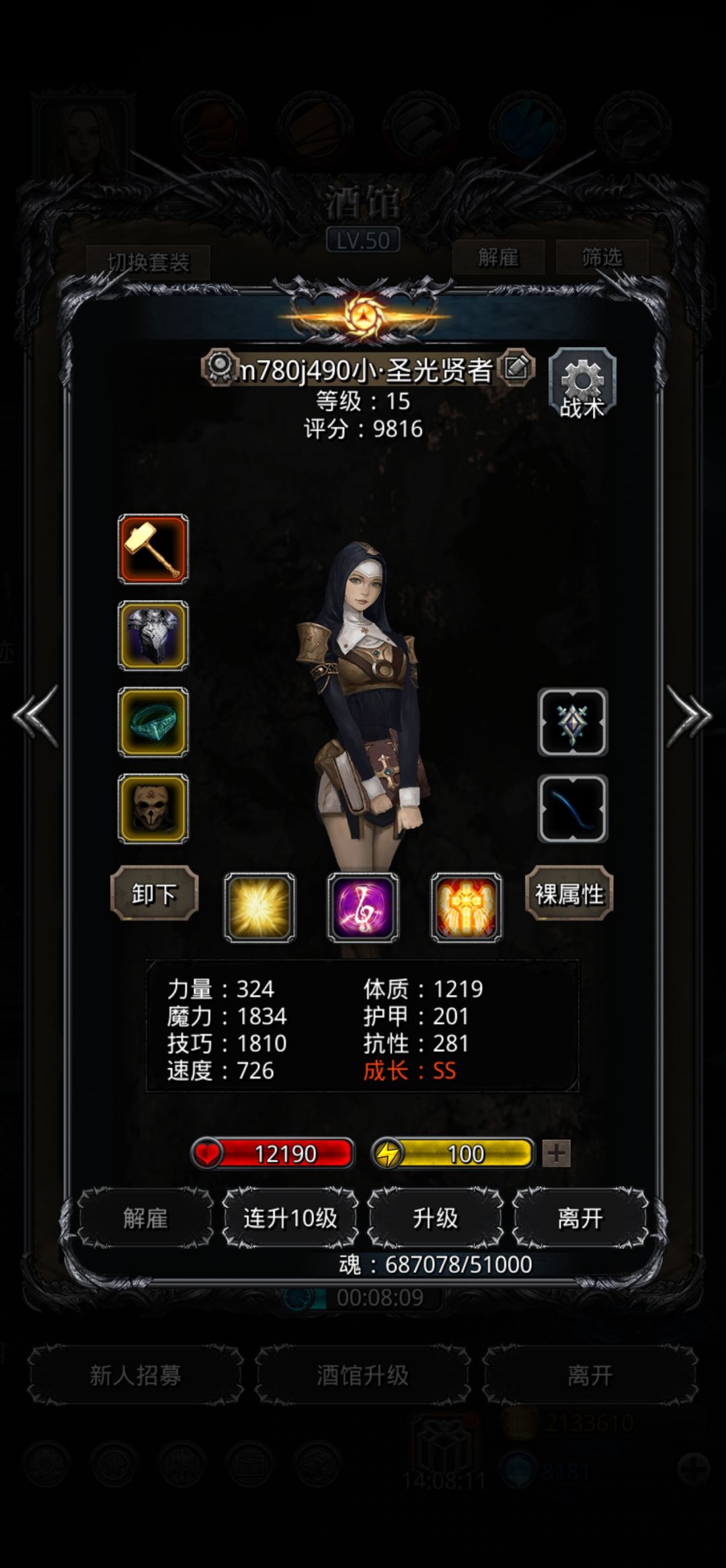 法师圣迹70磨过了,这里不得不说巫医和血法真是好用啊,之前上两个祭祀都奶不过来,现在一个巫医就能挂机。重点说下,血法吸血死不了不用管,法师刷技不能断,开局先奶一口技,后面可以适当调低点治疗线能更好保证血线健康,不浪费治疗,我是85;祭祀一直奶,冷却时间必须小于等于5.3,否则奶不过来,最后巫医我随便配了下,试了下居然很好用,开局先给祭祀来一口,我的祭祀血少抗低,优先照顾,然后除了血法哪个血少点哪里,我点困了差点睡着,就开了自动了,而且还开着攻击,不知过了多久第一次就过了,打第二次我观察了下巫医设置45/70奶,正好是巫医满血被攻击不会自奶,他会优先奶别人,我建议按照血量和抗性来排队,弱的靠前能优先被治疗。为了求稳法师和巫医不开攻击最好,大家可以参考下按照这个思路试试。