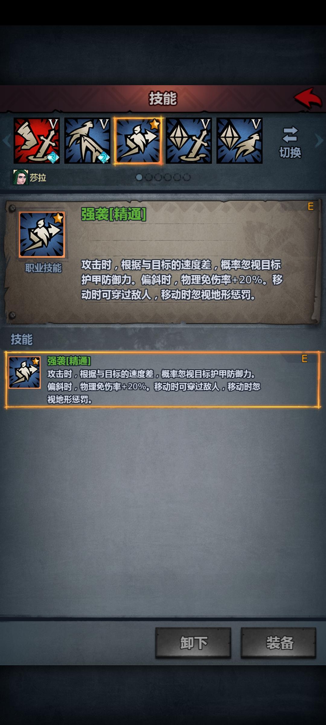 强袭:偏斜时物理免疫伤20%根据速度忽略敌人护甲