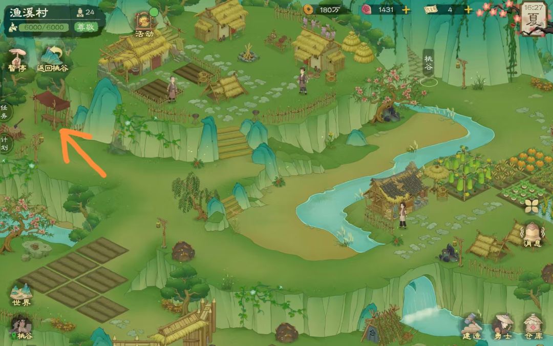 游戏细节篇: 1、关于勇者:零氪党的队伍推荐慕容婉,乔河,陶小青;微氪党:,过渡队伍搭配孟和,乔河,李陵儿,后期将乔河换韩菲。 ..........(1)该两套队伍主动兽潮打法:孟和,乔河提前攒好大招多带点攻击类宝石,等小怪聚集放大招清杂,小怪清完释放射手技能攻击精英单位。PS:城墙血量不够或只剩精英单位时可以释放嘲讽,不停的拉扯勇者保持距离让箭塔输出。 (2)关于兽潮失败惩罚:防守失败会将村民屠杀至当前不死树所庇护村民数量,在进攻不死树,不死树血量归零则失败。失败后扣除建筑部分耐久 2、科研项目建议:优先点城门血量和箭塔攻击,以及几个离线,之后合成时间>两个修理>战争耐久损耗,建造收益在赤丘山声望够6000之后优先点。农业科技建议:前期优先白木板产出树木熟成时间,解锁孺米增产后优先点满,后期解锁楠木和榕树先将两个的熟成时间点满。其余的科技根据自己缺的材料来进行点取。 3.铜钱的来源: (1)礼堂每日获取(有获取上限) (2)桃谷货郎收购(货品售卖建议:鸡蛋,粗皮,凤羽和漂亮的羽毛,大豆,酸菜,萝卜,肉包子,食物尽量不要售卖,大米根据家里剩余的量酌情售卖) (3)日常每日任务 (4)主动和被动兽潮胜利奖励 (5)每日探索 每日铜币必要获取统计:日常2000,商人收购每日四次全作物售卖0氪约14万一日(微氪一日约18万)+每日集市材料收购,以及各摊位材料收购+每日一次探索 具体位置如图所示: