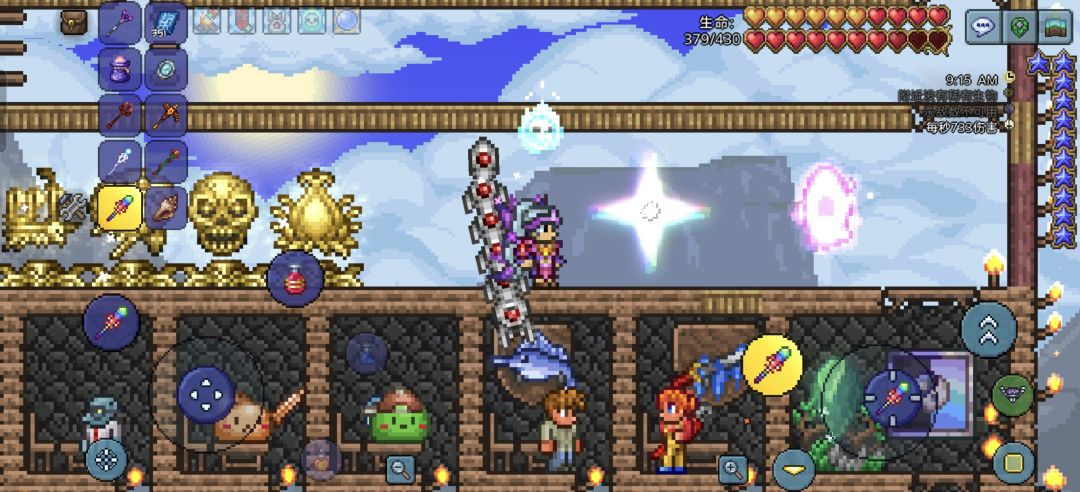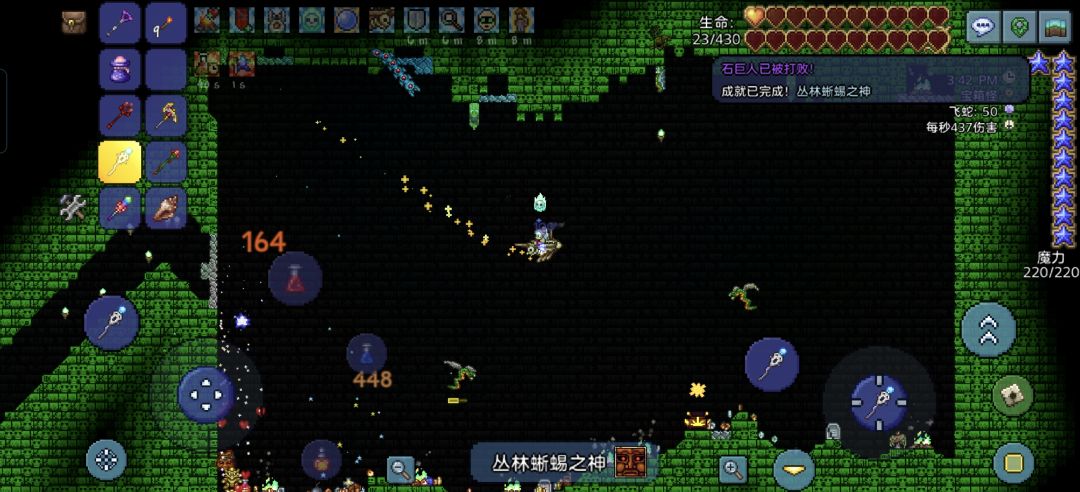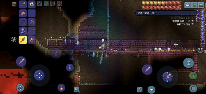 彩虹法杖一阶段没什么可说的,二阶段不行场地挖小了,触手太多一碰就碎,不得已只能拉上地表打了