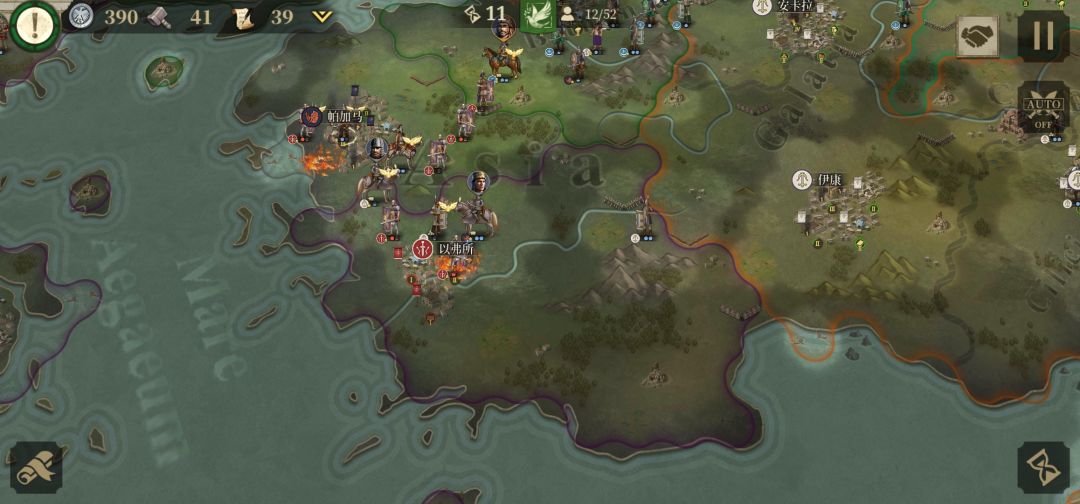 小结:爆破罗马本土拉文纳.本回合由于骑兵没有联动故没有占领帕加马