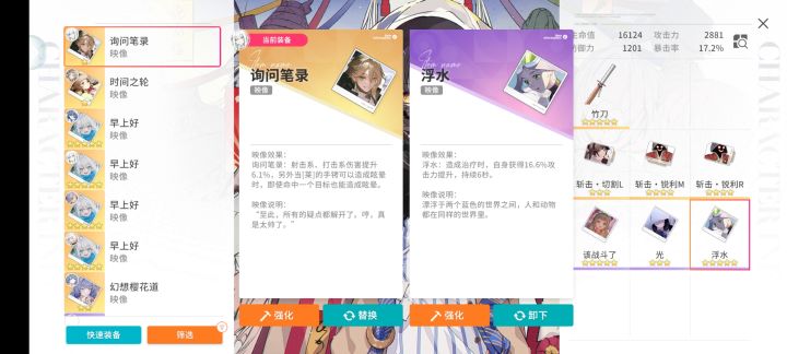 浮水的效果无论是自己吸血造成的治疗效果还是队友,甚至持续回血的料理都可以触发,相对应的巨幅攻击力加成实在太香了