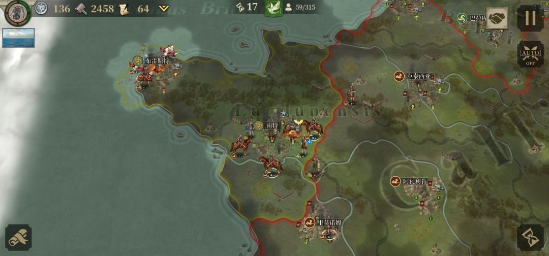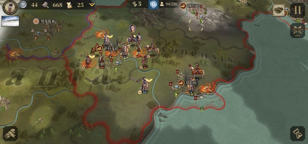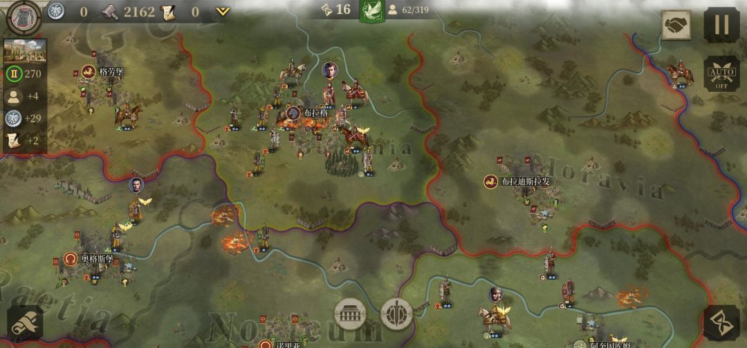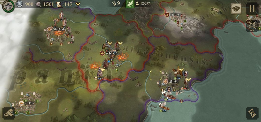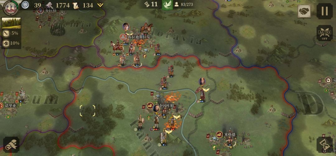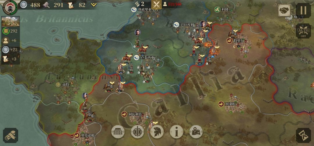 分析:由于屋大维版图庞大所以推荐分兵进攻.其每回合的高昂经济收益即可有效的支援盟友帮盟友渡过难关还可快速拉拢中立国为你冲锋陷阵.