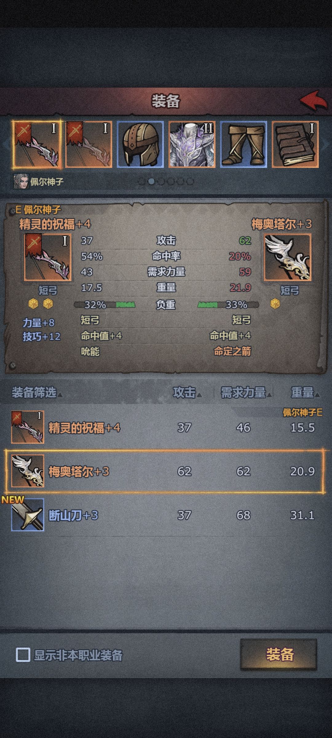 苗子选用佩尔,这样狩猎5和放逐3基本没问题,然后就是屠1,和一个信仰,信仰有3最好,没有就1顶上也行,弓随便拿一把吮能就行