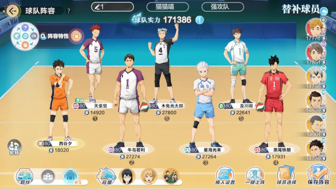 副属性有效词条就比较多了,意识、进攻技巧、力量、强攻,反应、防守技巧、精神、拦网、共鸣6之后快攻也可以。
