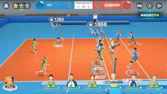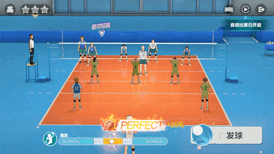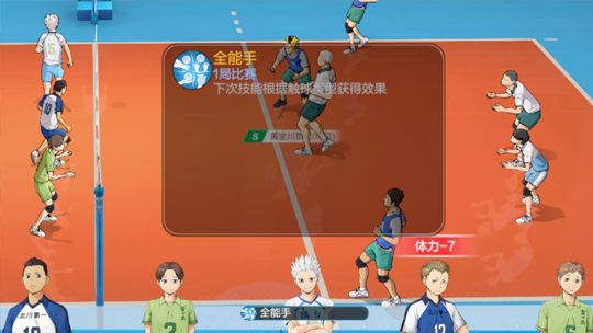 发球:对方后排球员的接球属性减少14%/17%/20%,持续2次过网