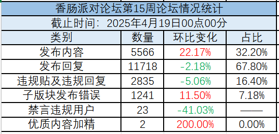 【第15周周报】发布量增逾两成彰活力,违规数降近半显文明