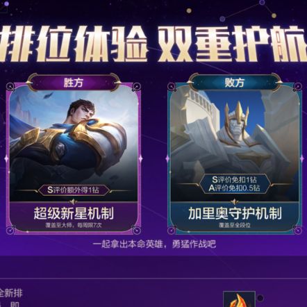 “双星璀璨”活动结束倒计时最后一天!截止至4月19日(今日),召唤师完成更新至6.1新版本“双星璀璨”,即可领取龙魂水晶*100、团队胜利加成卡*2、3胜双倍晶石卡奖励。