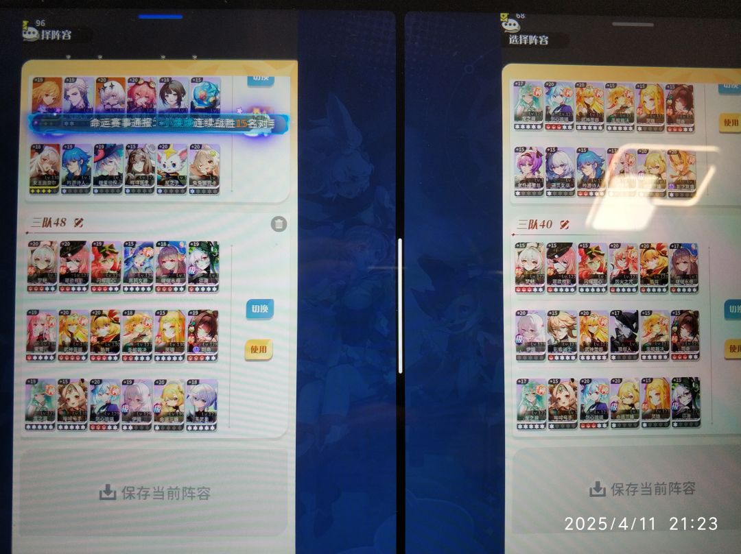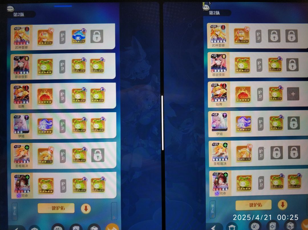 2多队阵容,无游铃,仅供参考,传奇五队不影响奖励所以没有5队阵容。