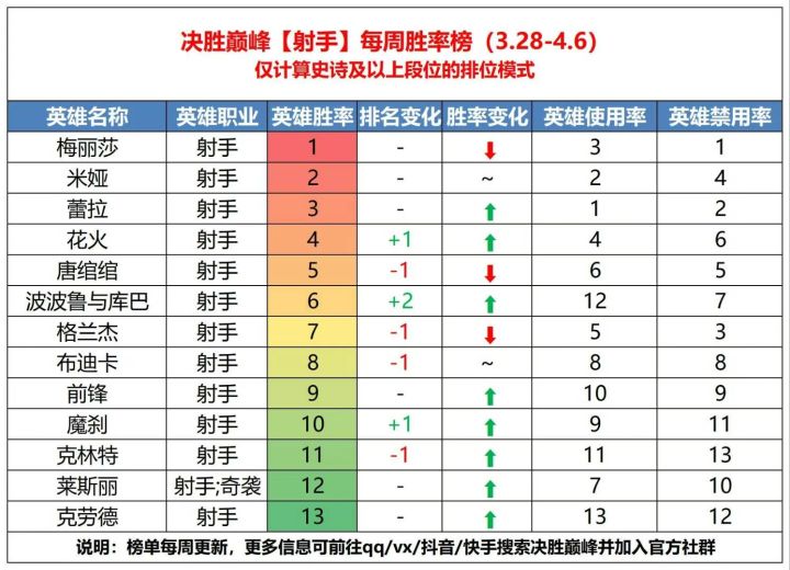 3、【射手】:梅丽莎胜率有一定下跌,与第二名米娅胜率差进一步缩小。