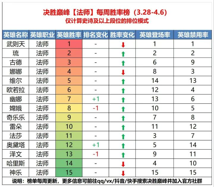 上分必备!3.28-4.6英雄胜率排行榜更新