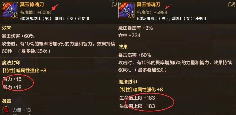 小词条:暴击+14抗魔,双攻+25抗魔,命中+29抗魔,力智+33抗魔!