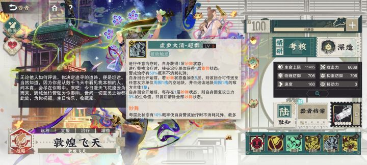 被动技能回血+回妙舞,即每回合自带2层妙舞,如果有1-2个队友在周围3格,即可达成2回合一次全图飞,这在危险环境又被分散站位中有一定的发挥空间