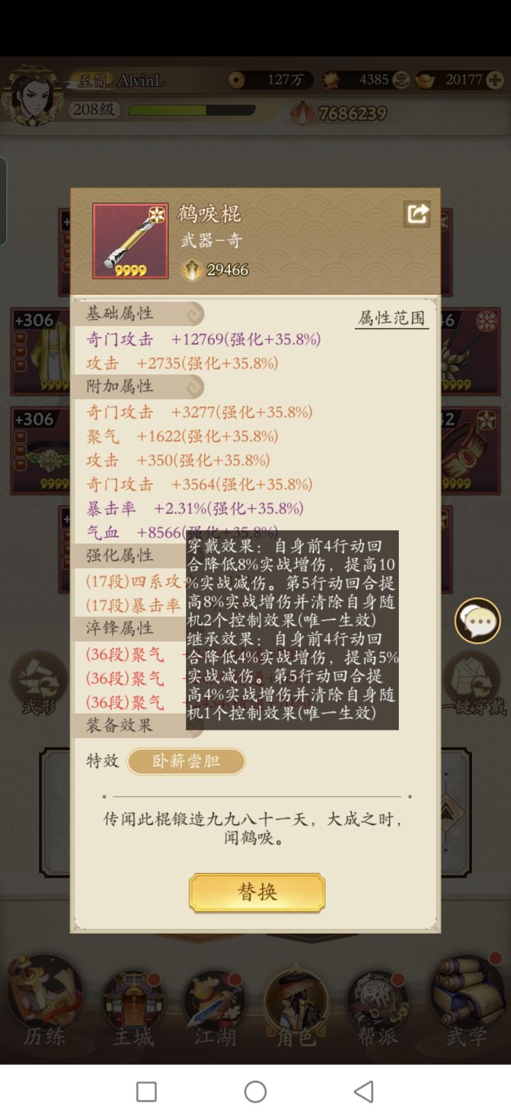最近装备出了卧薪尝胆又正好出了龙王 两个组合使用后实力瞬间起飞 武林各种越战 最高越战96万 太爽了。