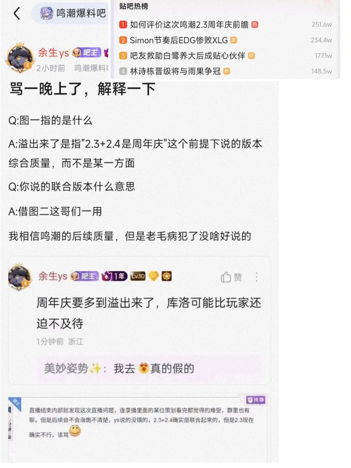 鸣潮爆料吧吧主余生对2.3前瞻直播解释