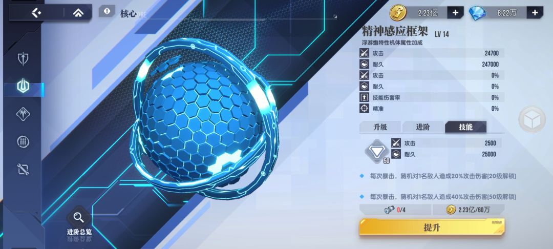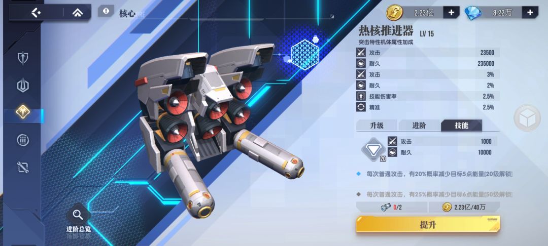 2、进阶是百分比属性和特殊属性的提升,资源非常紧张,希望官方后续补充这方面资源的获取,现在感觉是根本升不动,目前获取有限的进阶资源,有seed自由高阶的,建议集中给强袭。没有的建议集中升浮游系的,因为权天使是平民玩家能用的不输于seed自由的杀boss神机,资源获取杀boss是很重要的,必须要有限考虑怎么输出最大化。