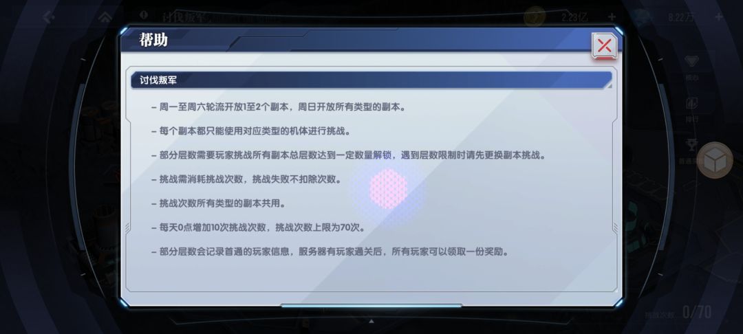讨伐叛军玩法是每天回复10次挑战次数,所以不需要每天都打光,咱这等需要自己打的那个系开放的时候再打。