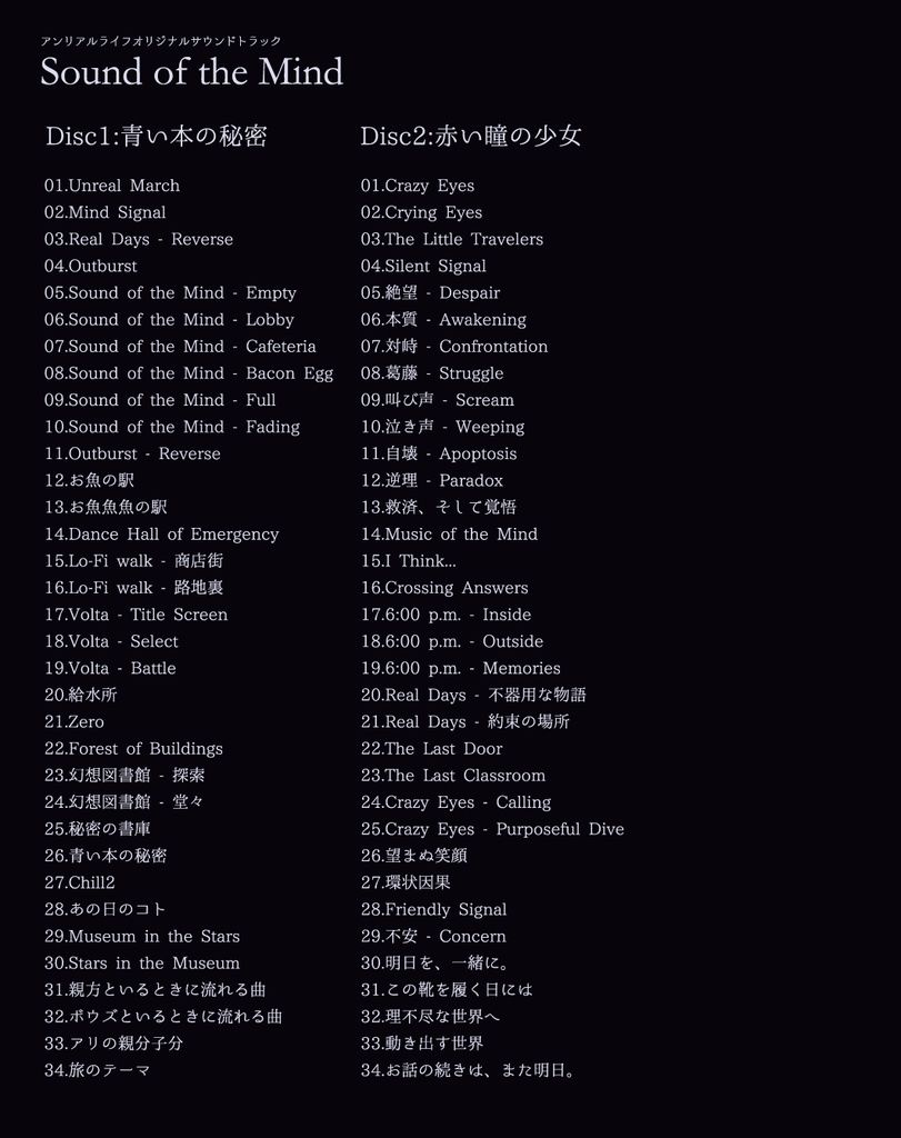 《非现实生活》游戏原声带"心灵之声" Disc1: 蓝本秘密(1 - 10)