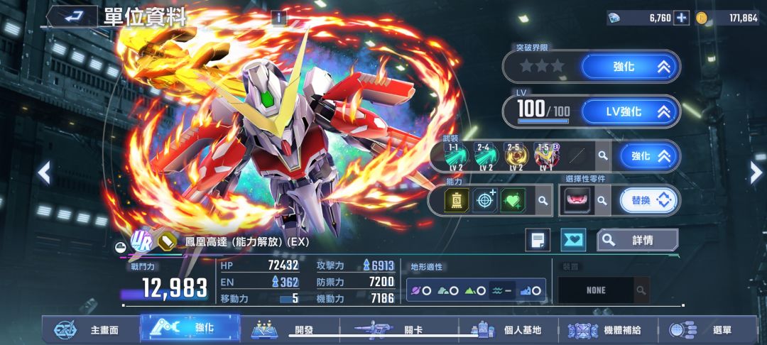 支援机:T0档:自由EX,(入选原因:射程远,EN耗能低,地图炮应用场面广泛,地形四适应。)。凤凰高达,(入选原因:每回合所属部队HP回复,高难必备被动,谁用谁知道。)。风灵高达,见过别的UP使用,发现辅助能力出色。T1档:其他。