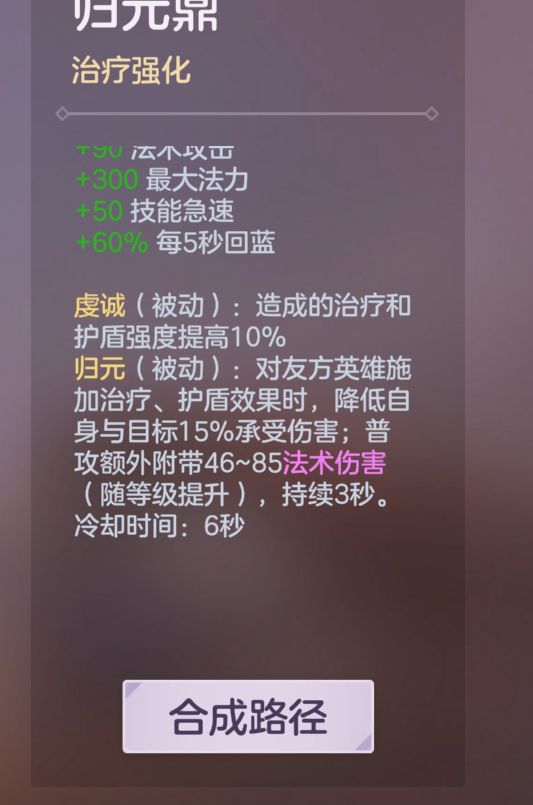 一件辅助装,也是一件法装。宝石和法棒的结合,再面对桑榆和露西亚高回血,可以在前期转向合减疗