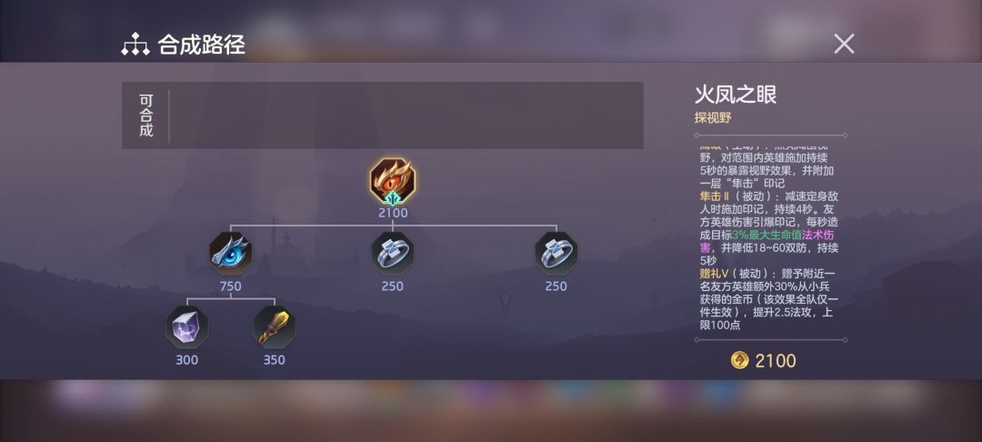 记忆水晶出门,敌方有回血英雄先出妖蛇之牙,然后鹰眼,合法典,升火凤(技能审判)