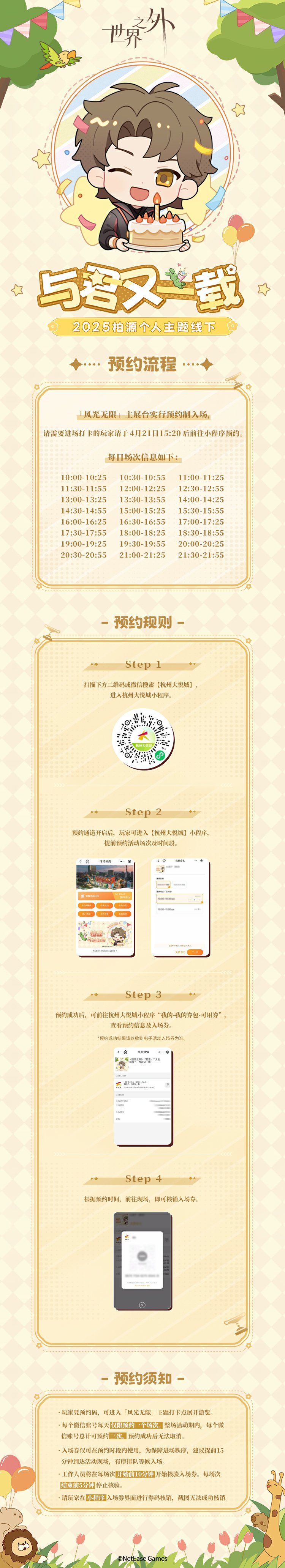 ✦预约界面将在4月21日15:20准时上线【杭州大悦城】小程序,玩家可提前进入小程序完成注册,待预约时间后进入相关活动页进行预约。
