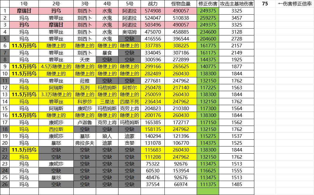 由21号数据那横蓝虚线可知,单c高战玛乌,确定了怪物属性。阵容战力降低到11万,和30万时候的怪物属性一致。即证明了规则4和规则1。这个怪物会按照11万主C那个战力确定一个降低的下限。