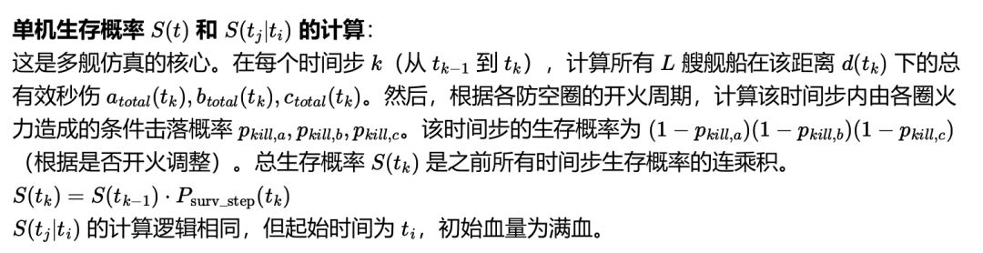 2025.4.21更新:还是干脆把多机组支持做了。多机组的情况下,「三、3」介绍的解析法求期望是超指数复杂度(指数是防空圈总数,底数是机组数量+1),因为每个机组受到的秒伤与其余机组状态间存在循坏依赖,会带来状态空间爆炸的问题。呆呆现在实际是用蒙特卡洛法来求多机组各个时间点幸存数量的PMF,单步复杂度关于舰船数量和机组数量都是线性的。