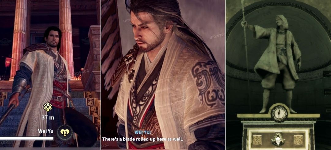 玩家操控角色"霞"被设定为传奇刺客魏羽的养女,支持外观自定义系统。魏羽作为秦朝刺客最早出现于《刺客信条2》的兄弟会雕像群中﹣﹣其雕像动作正是手持长矛刺杀秦始皇的标志性动作。因其反抗暴政、守护百姓的壮举。魏羽被后世追认为刺客兄弟会的精神先驱之一。