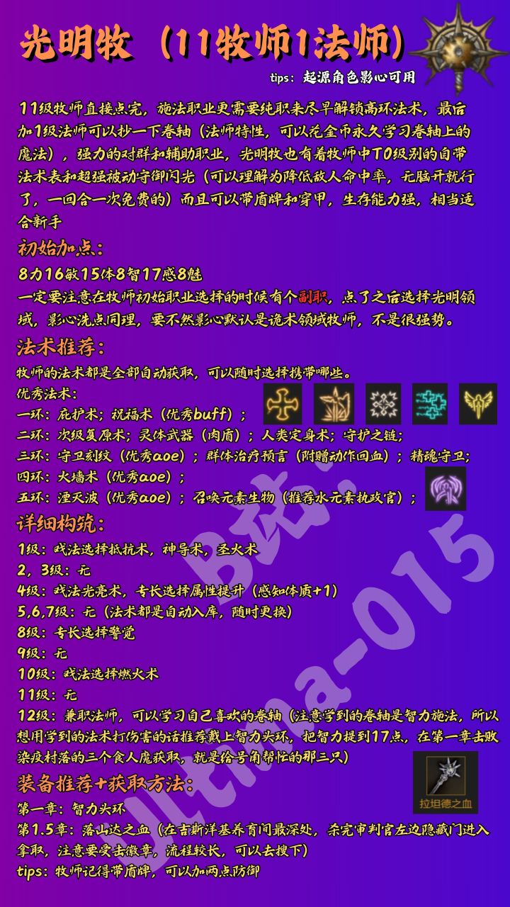 简单的法系职业,也推荐给起源角色影心洗点成光明牧,无论是对群攻击还是辅助贴buff,甚至是放在营地里专门做早操,都是不错的新手选择,而且法术自动全部入法表,选择困难症福音