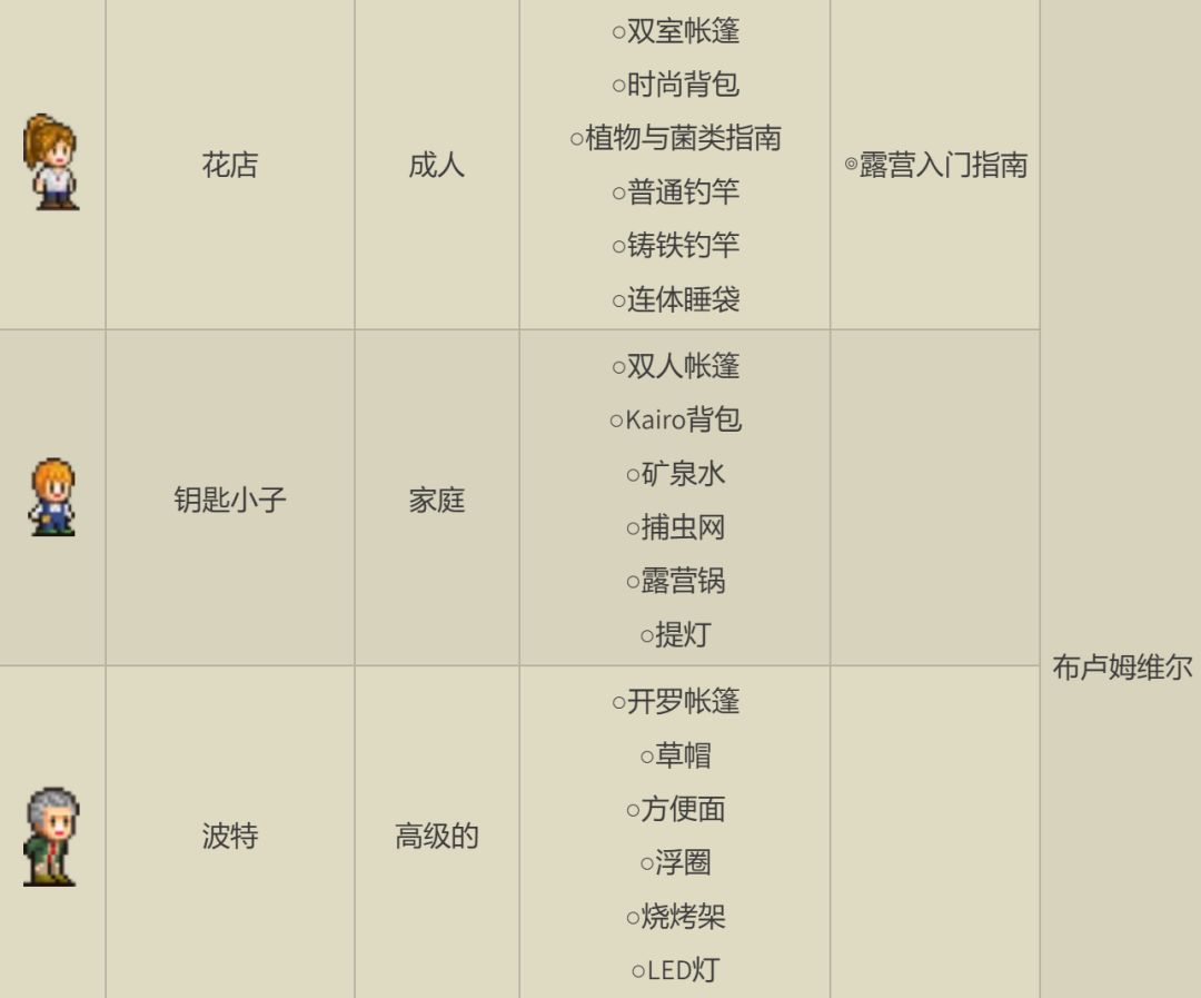 - 露营时道具也是很重要的哦,在附近的城镇中建立直营店,买完东西的顾客就会前来露营地。