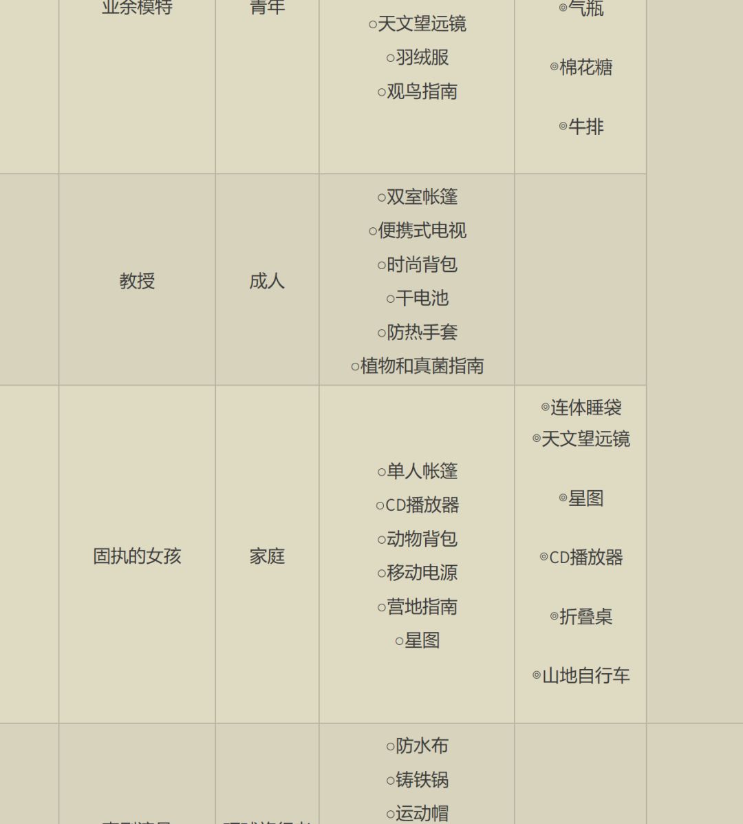 - 选择三样物品,让他们在旅行中随身携带,然后就是很重要的一个环节:为他们选择一个得分较高的热门环境营地!!在他们办理入住手续之前,该区域将被标记为 "预订"。
