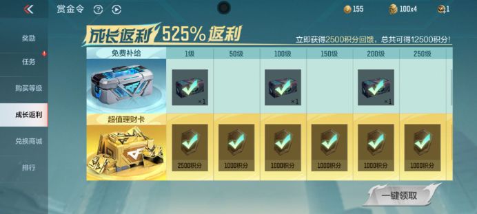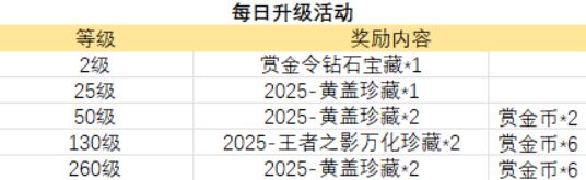 如果我们是’纯真白嫖弟子’则可以选择每日提升50级,那加上累计冲级活动的奖励就共计是10个赏金币、35个黄盖珍藏宝箱。这是最具性价比的方案。