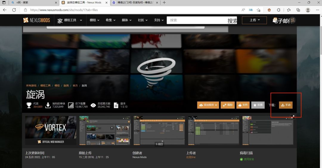 如果在下载mod时只有手动下载的选项只要把下载好的mod拖到vortex里就可以了。