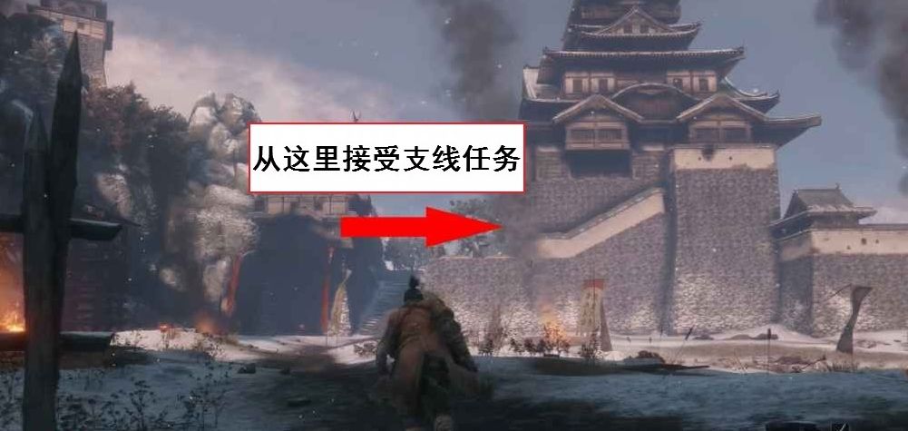 击败第一个大BOSS【鬼庭形部雅孝】之后,前往【苇名城 城邑 正门】鬼佛处。从与BOSS战斗的区域穿过去上楼(不是鬼佛的楼梯,是战斗区域另一边的楼梯,如下方第一张图所示)。从门进入大殿之后会遇到一个NPC,与他交谈之后会获得一本书,打开菜单阅读可以发现上面要求我们去击杀几种小怪(也就是老鼠,样子如下方第二张图所示)。