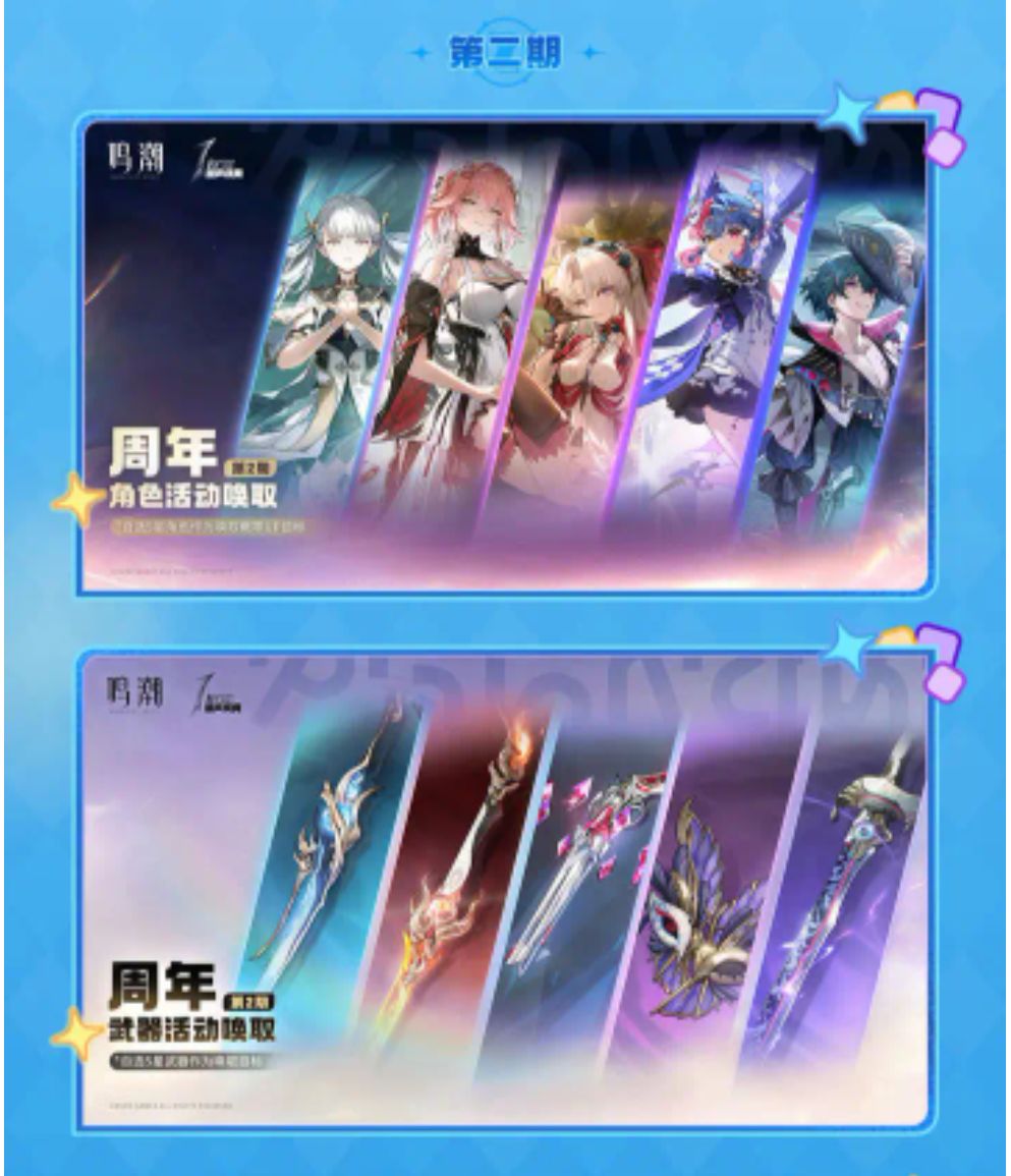 啰啰嗦嗦这么多,一句话就是:2.3上半,赞妮+菲比allin了,夏空的幽默强度本来也是为了上半做垫子的,否则整个周年庆你都不抽卡累消的任务又咋做呢。换句话说2.3上半,所有玩家都必须抽,不仅必需抽,而且必需是氪金抽两个限定角色+她们的各自专武,想白嫖?没门!说难听点说句超级带节奏的话,如有冒犯我先道歉:库洛摊牌告诉你,2.3上半抽不出来两个角色+专武你可能真就短时间不配玩鸣了。