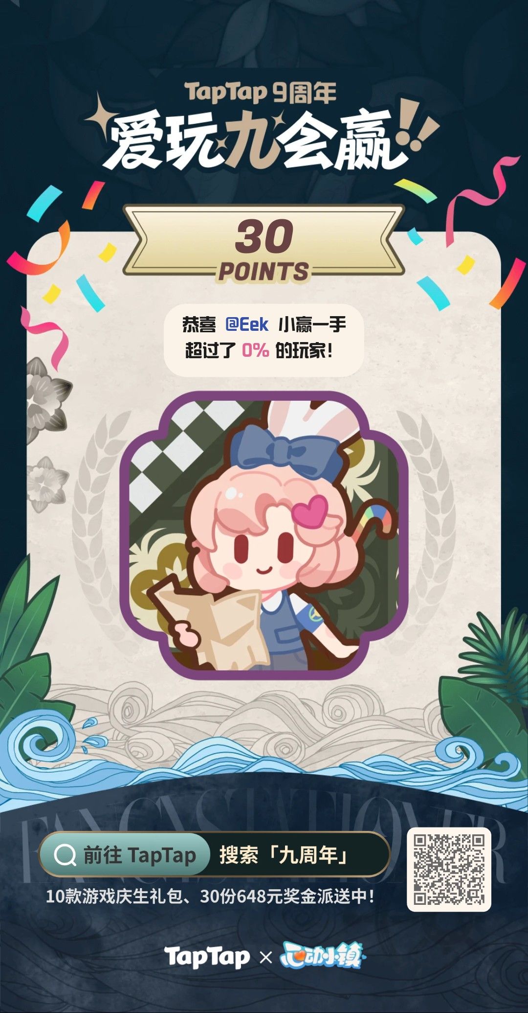 taptap9周年快乐,恭喜taptap大获全胜,也恭喜自己赢了0%的玩家芜(。ì _ í。)