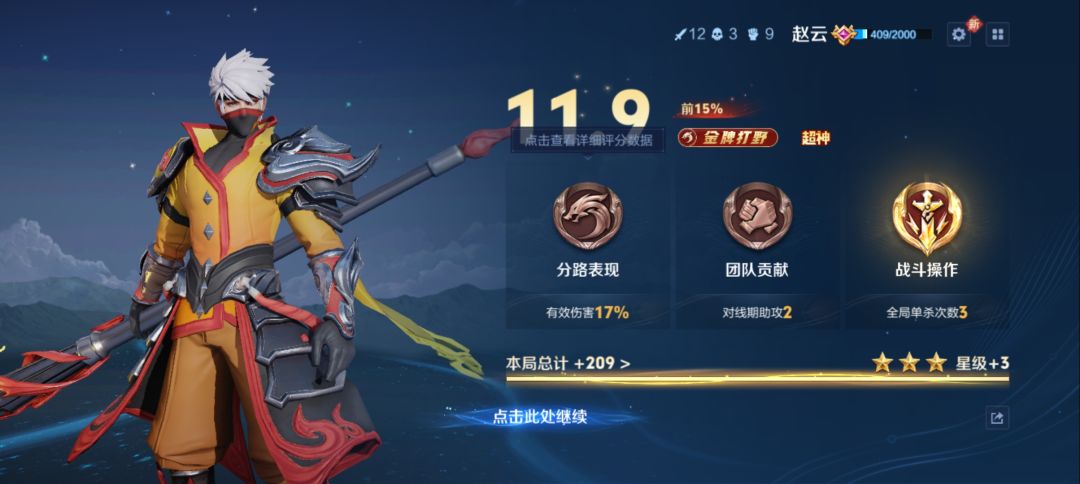 很久没打王者了,第一次知道还可以一把就升3颗星的。