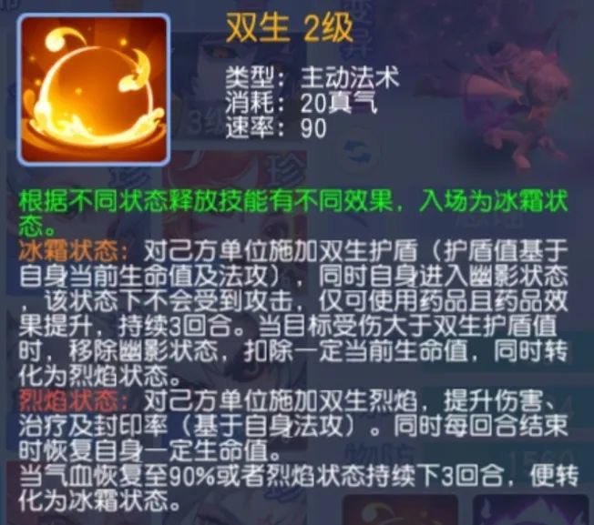 无论是仙道还是魔道,对宠物的强化都是冰霜状态。魔道提升目标双防,仙道附加恢复气血且可额外使用三次药品。