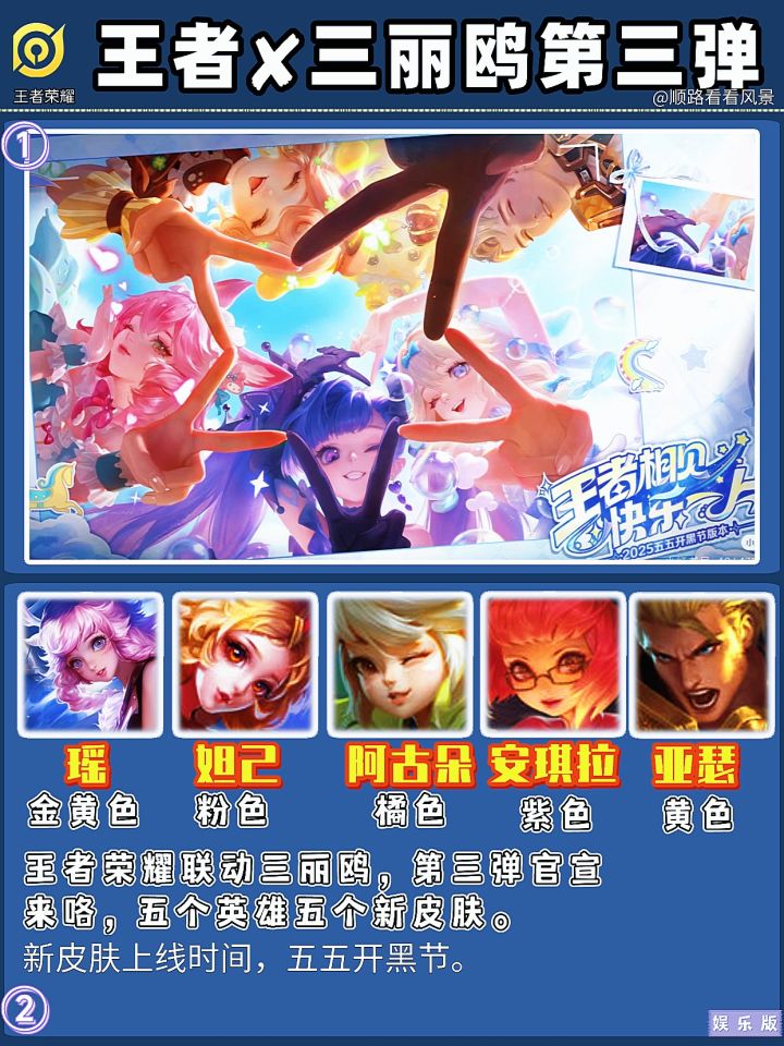 王者和三丽鸥的第三弹联动,阿古朵,妲己,安琪拉和瑶妹看起来都好可爱啊,亚瑟你自己一队哈。