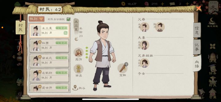 男的要有技能带着伏羲琴,女的不用有技能带崇吾木,然后同居结婚就能一次生两个带技能的小孩了 (后期有技能书都给男的用,这样一本书可以三个人学会技能)