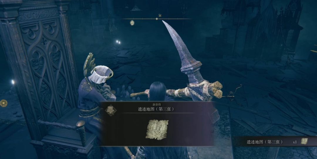 将两个指头废墟的吊钟全部吹响后回到教堂与尤弥尔对话,它会把第三章废墟地图交给我们,其实第三个废墟就是这个教堂。
