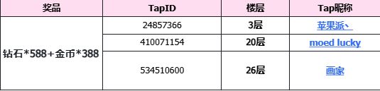 请在中奖名单公示后的3个工作日内联系福利官凭借游戏ID、获奖评论截图以及Tap主页信息进行核实领奖哦~