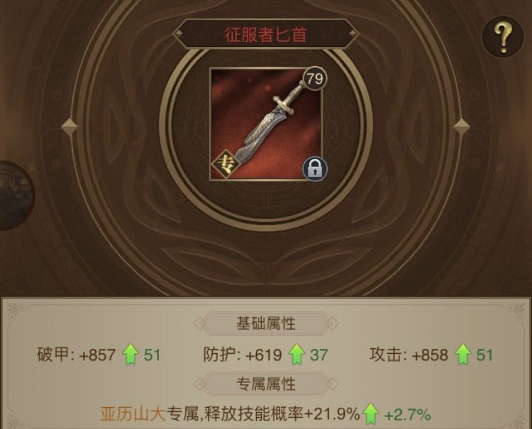 宝具属性,关键应和武将相性相合。主将亚历山大宝具想办法双攻一破最为有利,因为在赛季天赋的情况,攻城巴寨有15%的加成,驻防有铜墙铁壁的玩家更有20%的攻击力加成,能够参与一线玩家的战斗中,并造成很大的杀伤力,成为不可或缺的一员,有很大的参与感。