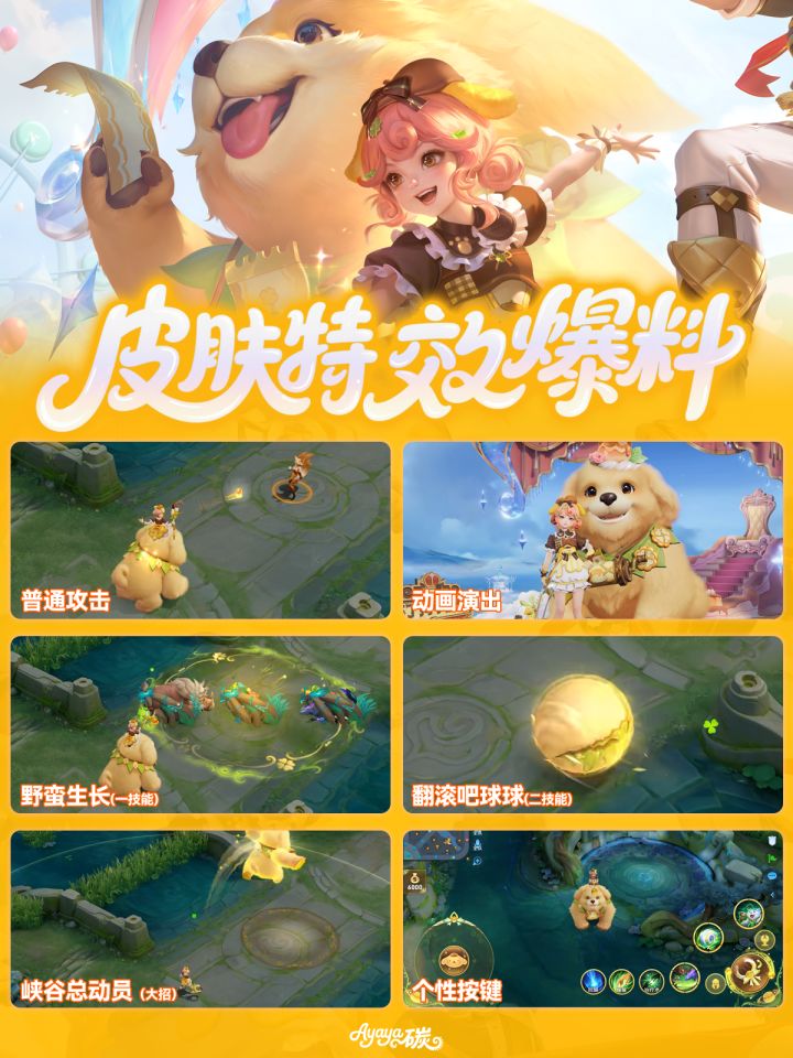王者荣耀三丽鸥联动皮肤第二弹~是阿古朵的布丁狗,旁边是牢亚瑟,一石二鸟了属实是……