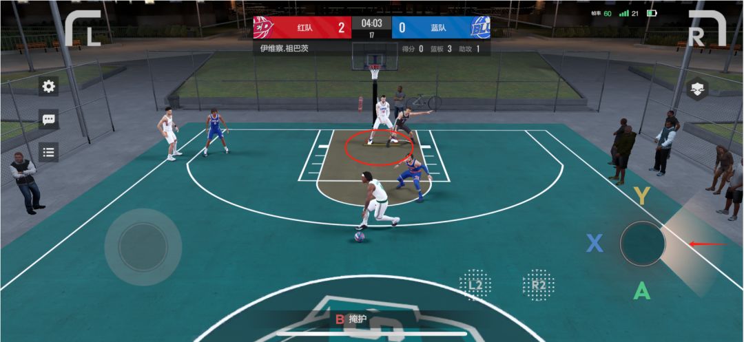 ① 这边没有太多的技巧,最为重要的是我们要保证每一次防守篮板拿到的同时,多多抢进攻篮板进行二次进攻。卡位的时候,不要直接卡位键,用加速+方向不停调位,卡在篮板和对方3号位中间再按卡位键,卡住位置后就看球员篮板的能力了,只要不是太长的篮板基本能拿下。
